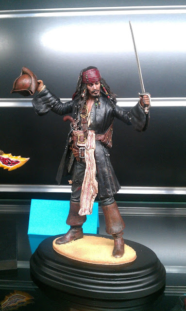 For the "part 1" I've choose a Neca CAPTAIN Jack Sparrow action figure from their Pirates of the Caribbean line. This figure was repurposed as statue fixing the position with glue after an arm was broken (sadly a very common design mistake in these figures where the material used for the joints was very fragile and cracks easily when you try to articulate them). The paint work quality of the most of the Neca's figures it's very good so I only try to "upgrade" this with slightly details such inks in the clothes to give them more realism or paint the skins.